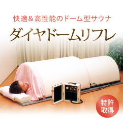ダイヤドームリフレ 仕様定格AC 100V 800W 最大 800W 最小 80Wサイズ大ドーム 幅 72cm × 高さ 46cm × 長さ 91cm 小ドーム 幅 62cm × 高さ 41cm × 長さ 91cm特定電気 用品の表示 電気サウナバス収納時幅 72cm × 奥行 46cm × 長さ 91cm適合検査重量大ドーム 9kg 小ドーム 10kg コントローラー 2kg出力調節器位相制御による無段階電圧調整総重量27kg 梱包ダンボール付属品共タイマー電動60分終了音付ダンボール サイズW 75cm × D 51cm × H 95cmヒューズ100V 10A管入ヒューズ付属品スポンジレザー長枕、 ネックカバー 反射敷きマット遠赤外線 照射ヒーター大ドーム 200W × 2 小ドーム 175W × 2 50W × 1反射敷マット遠赤外線の反射・汗受け防水・保温用マット 厚さ 2cm × 幅78 cm × 長さ 190cm安全装置各ヒーターに100℃ 過昇防止温度ヒューズ サーモプロテクター本体構造木材・合板・ウレタン発泡断熱材・塩ビレザー電源コード電源コード 2.8m 10Aキャプタイヤコード 出力コード 2.3m 7Aキャプタイヤコード電気料金40分使用 (20分800W+20分40W)で約10円 60分使用(低温浴)で約8円