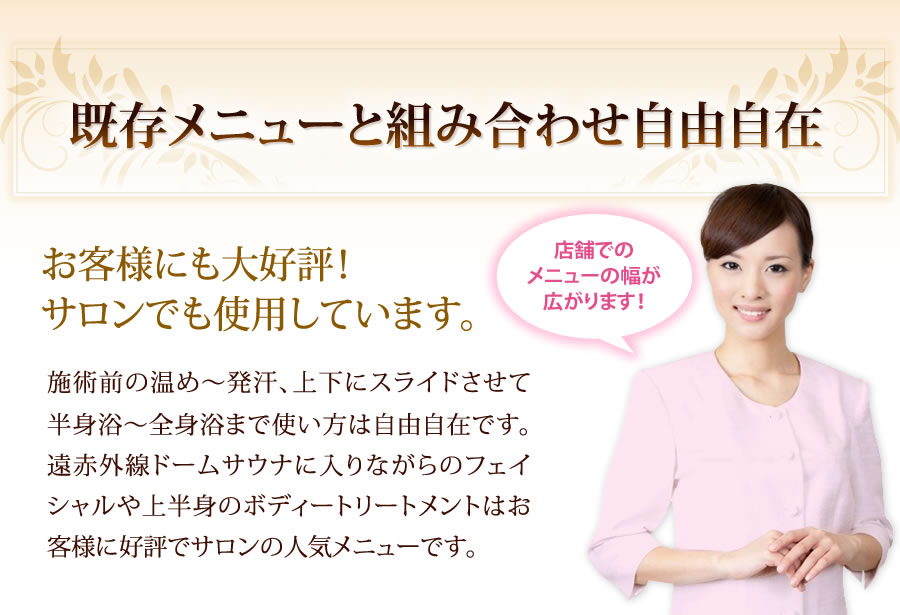 | 遠赤外線 ヒーター 炭/カーボン | 大ドーム 400W 小ドーム 350W 足裏投射ヒーター50W(下部ドーム足元) |